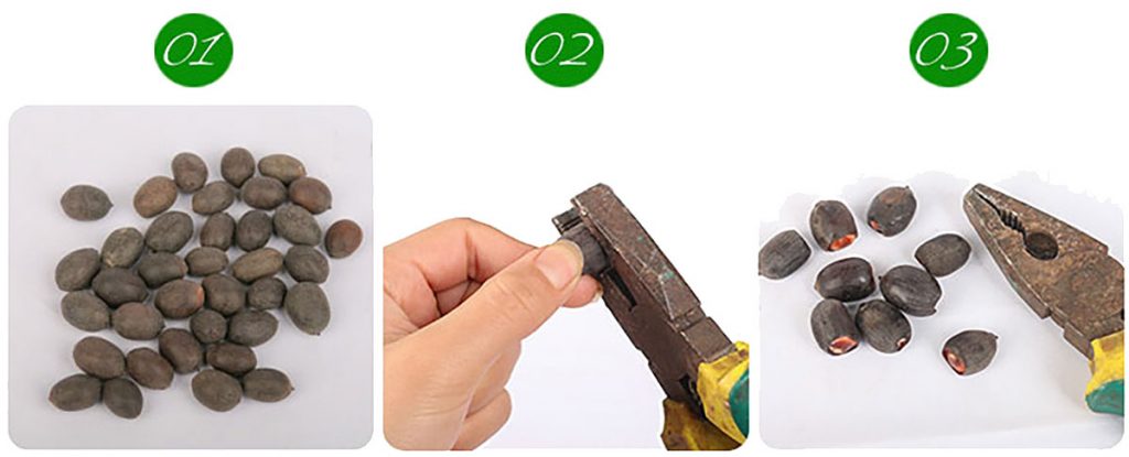 - Seed treatment: break a little mouth on the sunken end of the seed, being careful not to hurt the embryo. Do not peel.