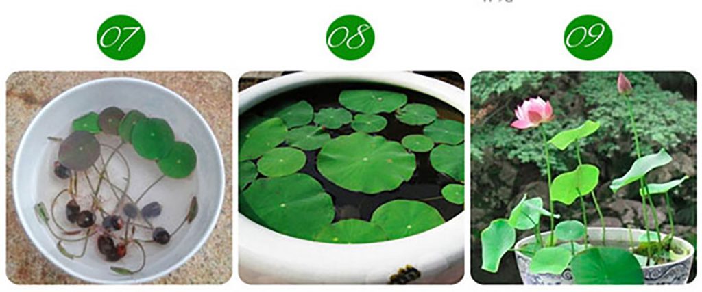 - Sowing: plant in the ideal temperature and sunshine. Lotus seeds can be sowed at any time of a year. It usually takes around 50 to 60 days from sowing to blossoming, a little longer in autumn (60 – 80days), without any dormant period.